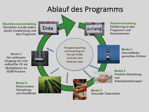 - Seminare für Führungskräfte zur Unterstützung der Gesundheitsförderung im Betrieb